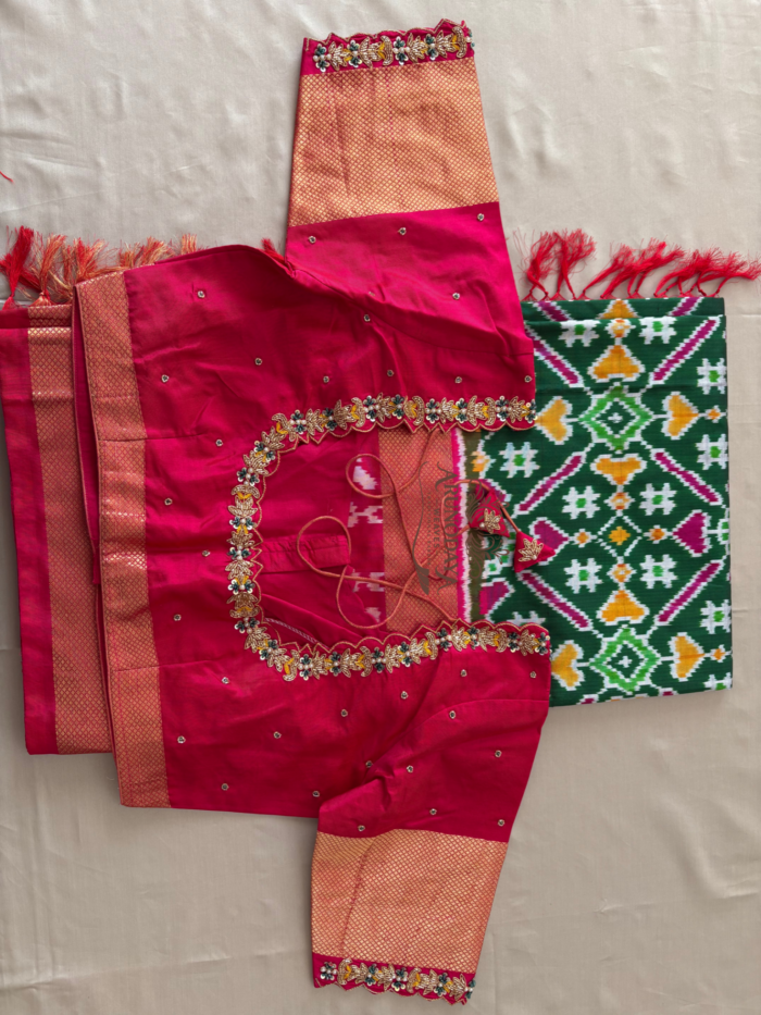 SKU: #PC121 Categories: $200-$400, All Over Print, Long Borders, Pochampally Tag: Stitched Design Blouse Size Adjustable - 38-42