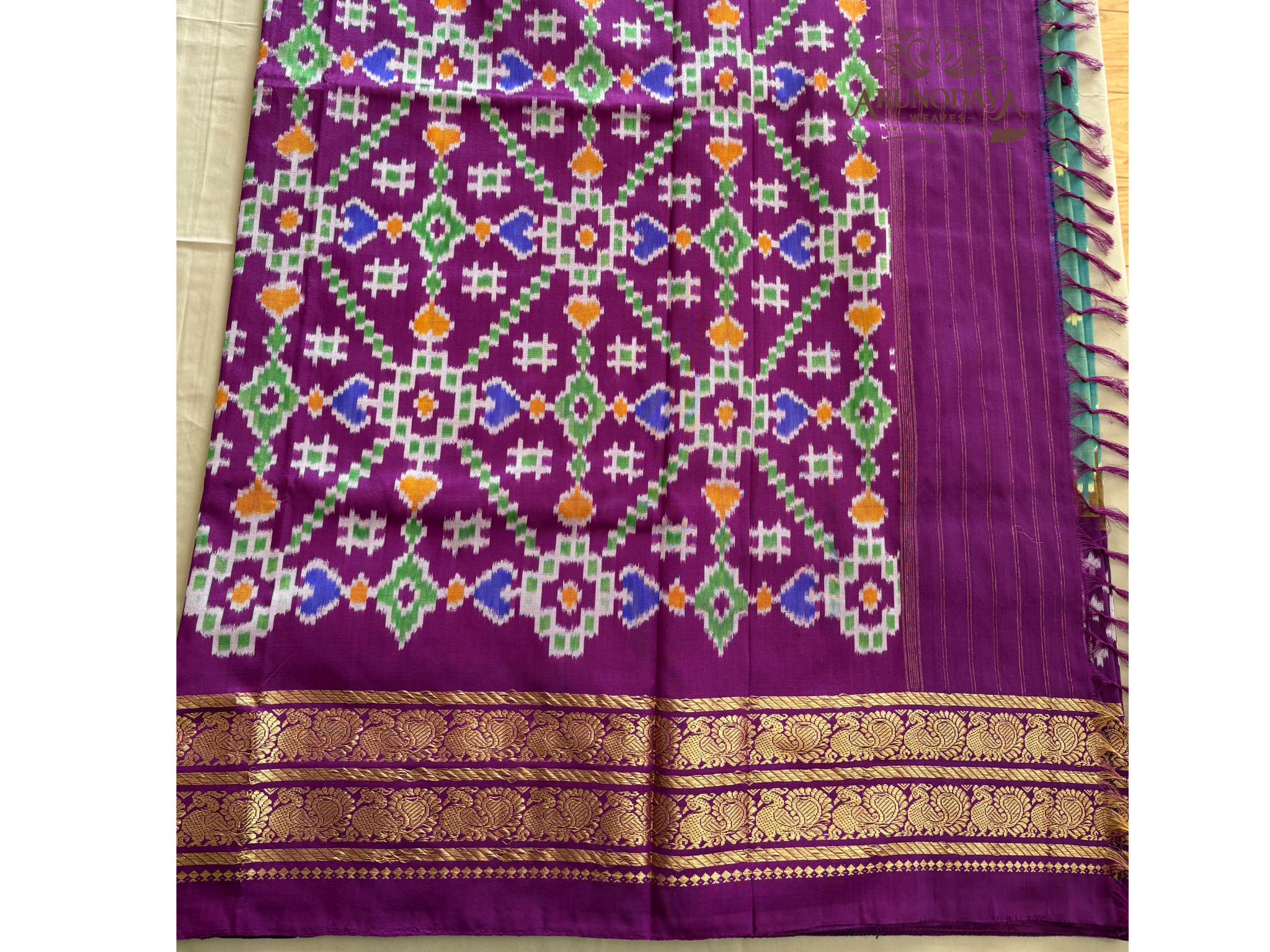 – *Design:* Traditional Ikkat patterns with an exquisite Kanchi border