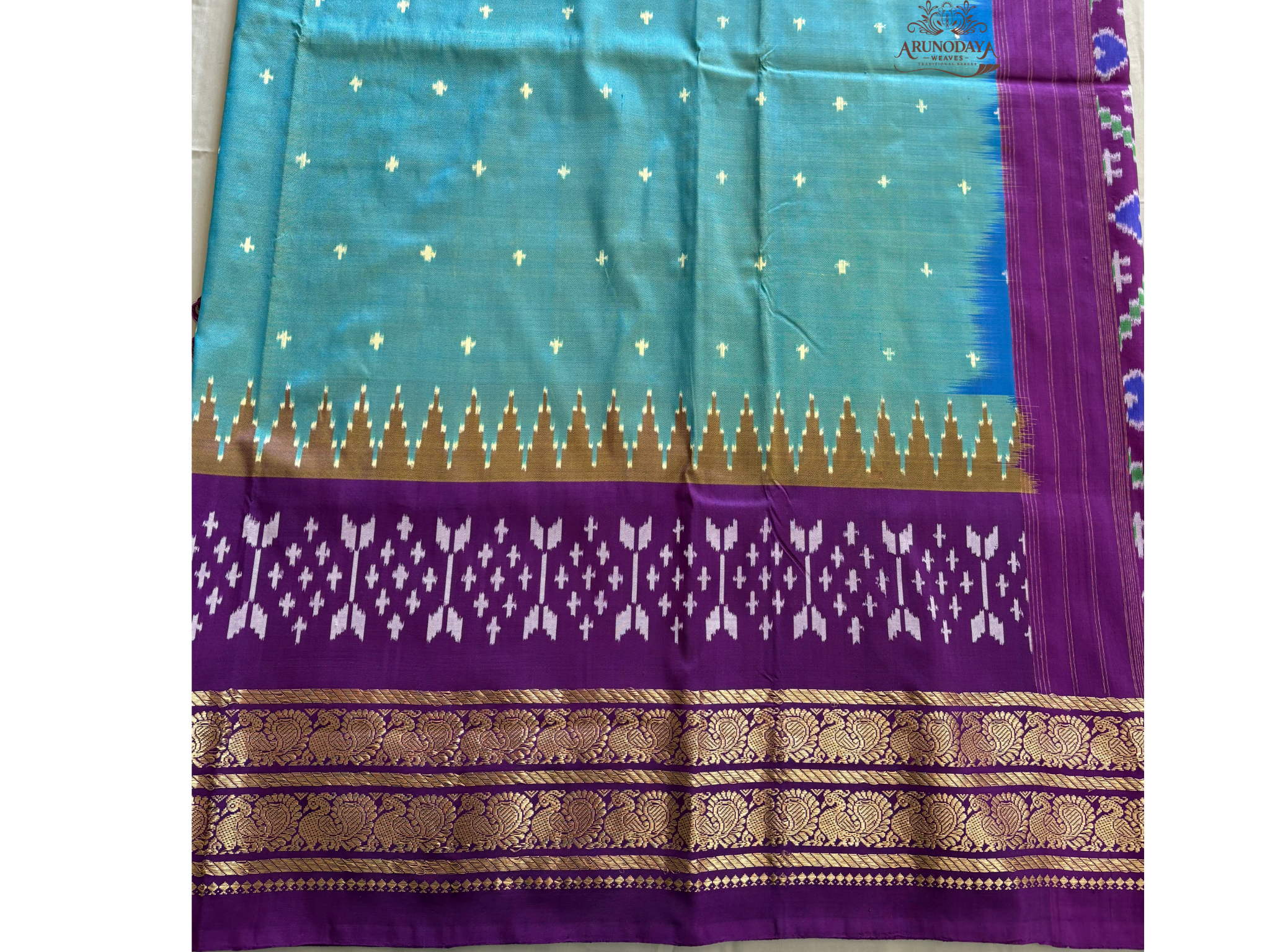 – *Pallu:* Contrasting pallu with detailed Ikkat motifs