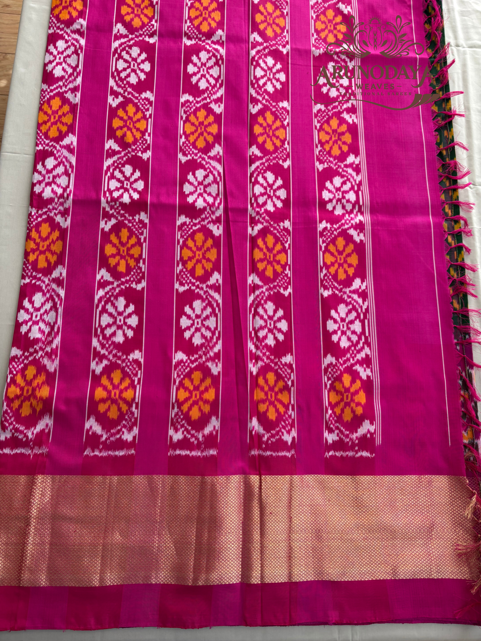 Ikkat Floral print Kanchipuram Boader Silk (Pattu) Saree